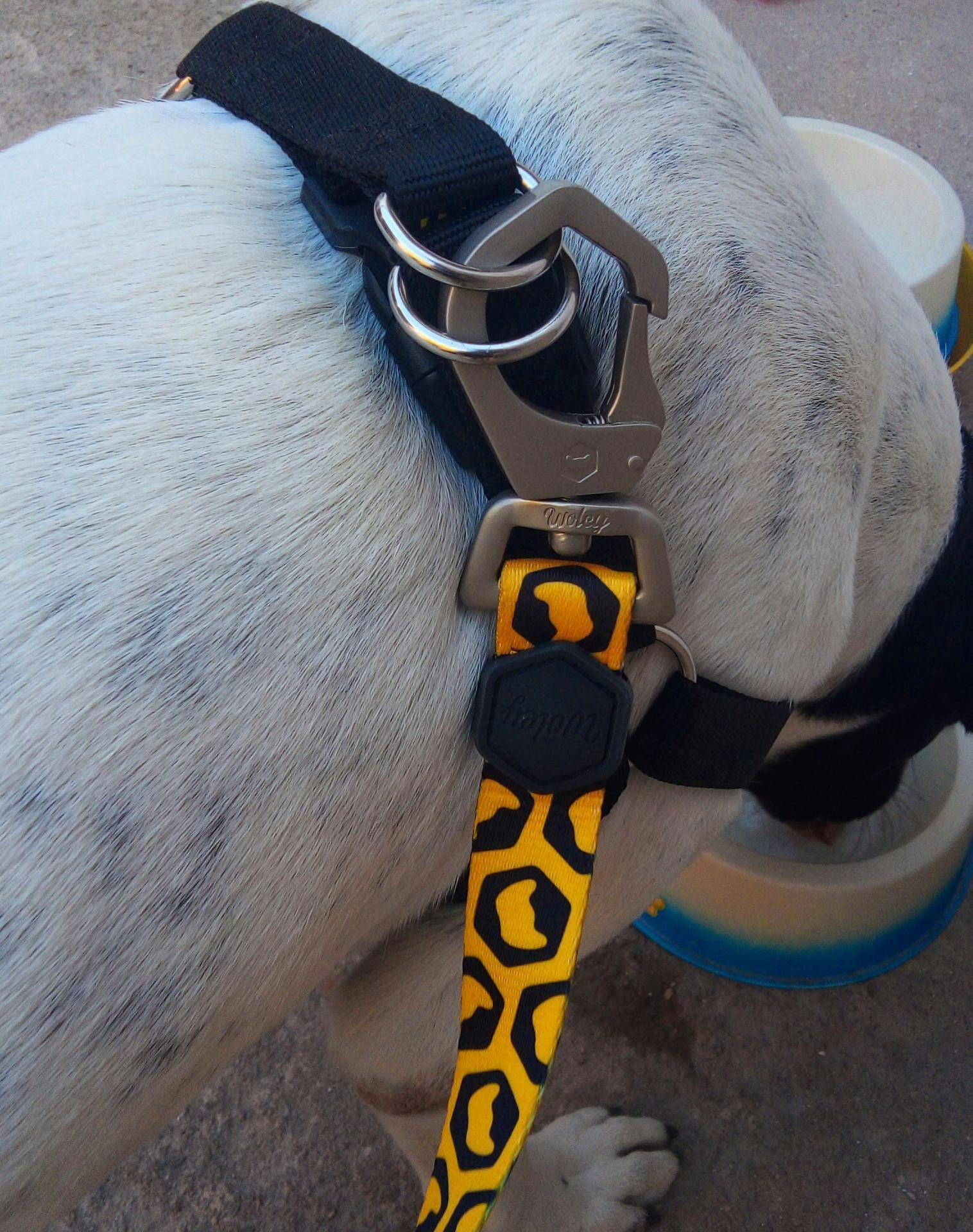 É o seguinte, a nossa guia possui um mosquetão que não irá enferrujar com o tempo, suporta as puxadas mais fortes e é feita com materiais atóxicos, protegendo a nível máximo o seu cãopanheiro.